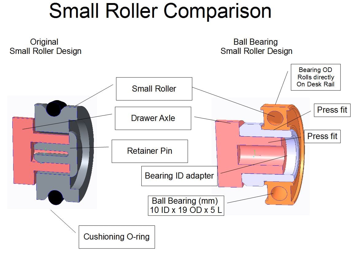 Ball bearing upgrade steelcase tanker desk drawer roller o-ring style