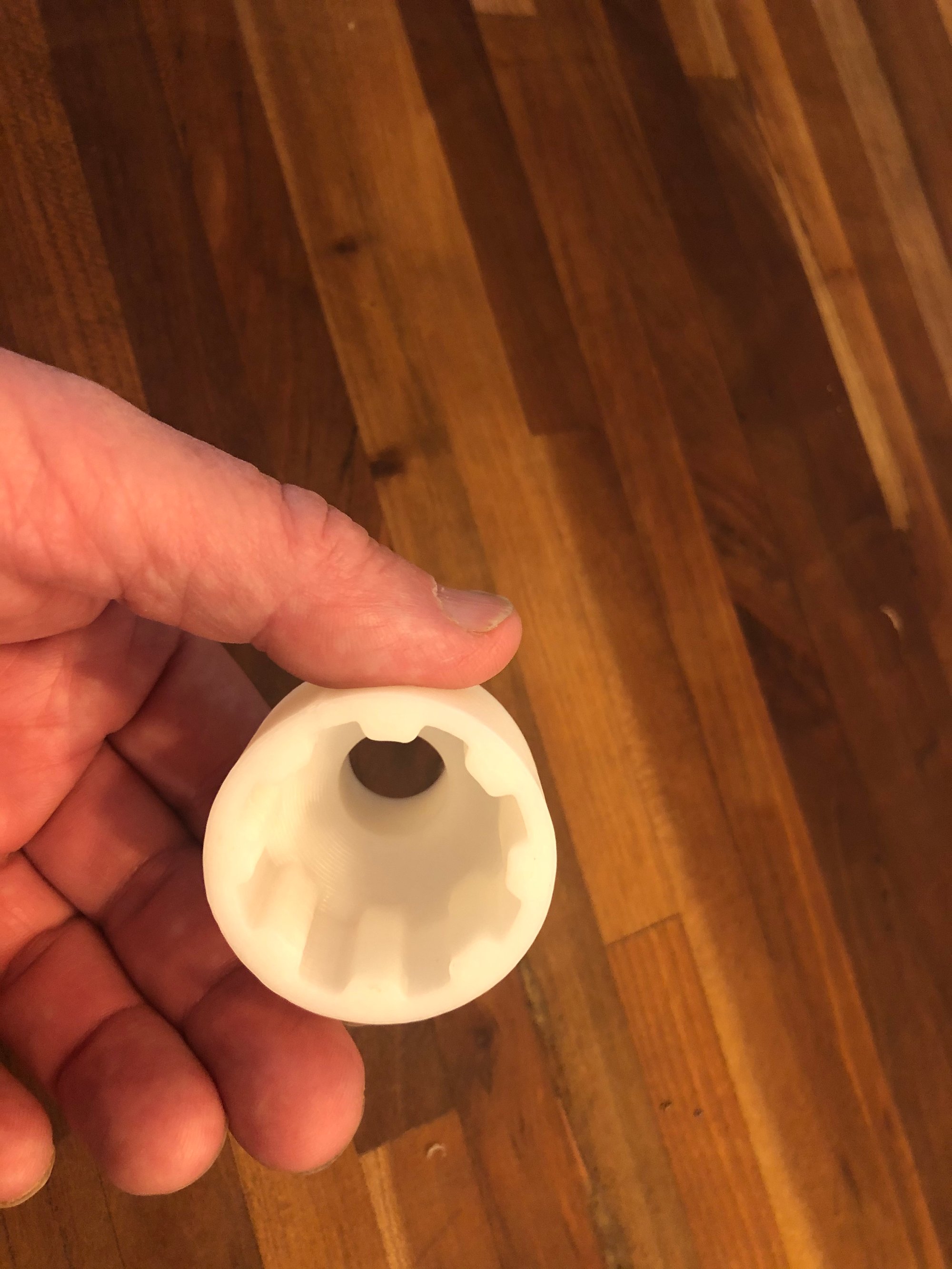 This Super Shop spline shaft power coupler is being offered for FOX or Smithy owners that have a need to drive shopsmith accessories. The coupler attaches to either the 8 or 10 spline output shaft of the drive head or the clevis shaft joiner output shaft and provides a 4 or 5 spline shopsmith compatible drive stub. It is a monolithic 3D print using ABS plastic.
